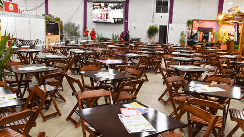 Um ambiente pensado para quem quer aproveitar a EXPOFICA com sabor, conforto e boas experiências.